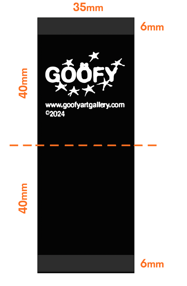 • Dimensiones de Etiqueta: 8 x 3.5 + 0.6 cm de márgen de costura — Doblez Medio